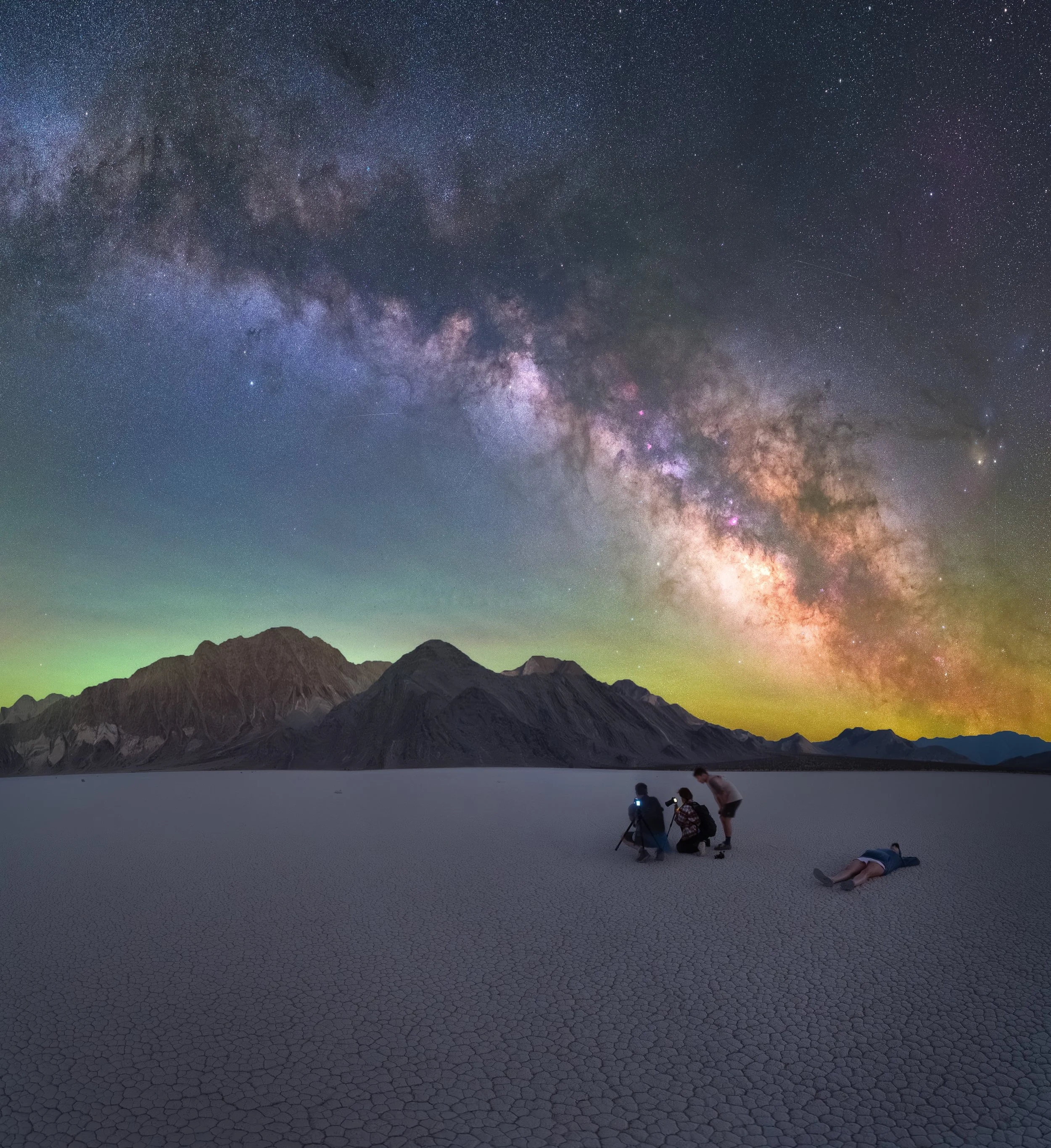 A behind the scenes shot taken during a custom small group astrophotography trip we put on in Death Valley! All the main roads to the Racetrack Playa had been flooded, so we 4x4’d this group up the back way of Lippencott Pass (brutal!) because our group REALLY wanted a night out far away from civilization.